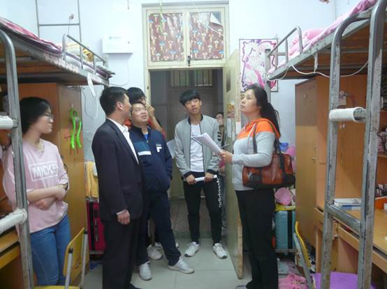 2016年4月24日下午四点,m88登录入口官网党总支副书记苗宝军、团总支书记沈会焘,辅导员杜娟以及14级15级的七位班长一起走访本院全部89个员工宿舍,进行宿舍安全卫生检查和宣讲反电信诈骗。
